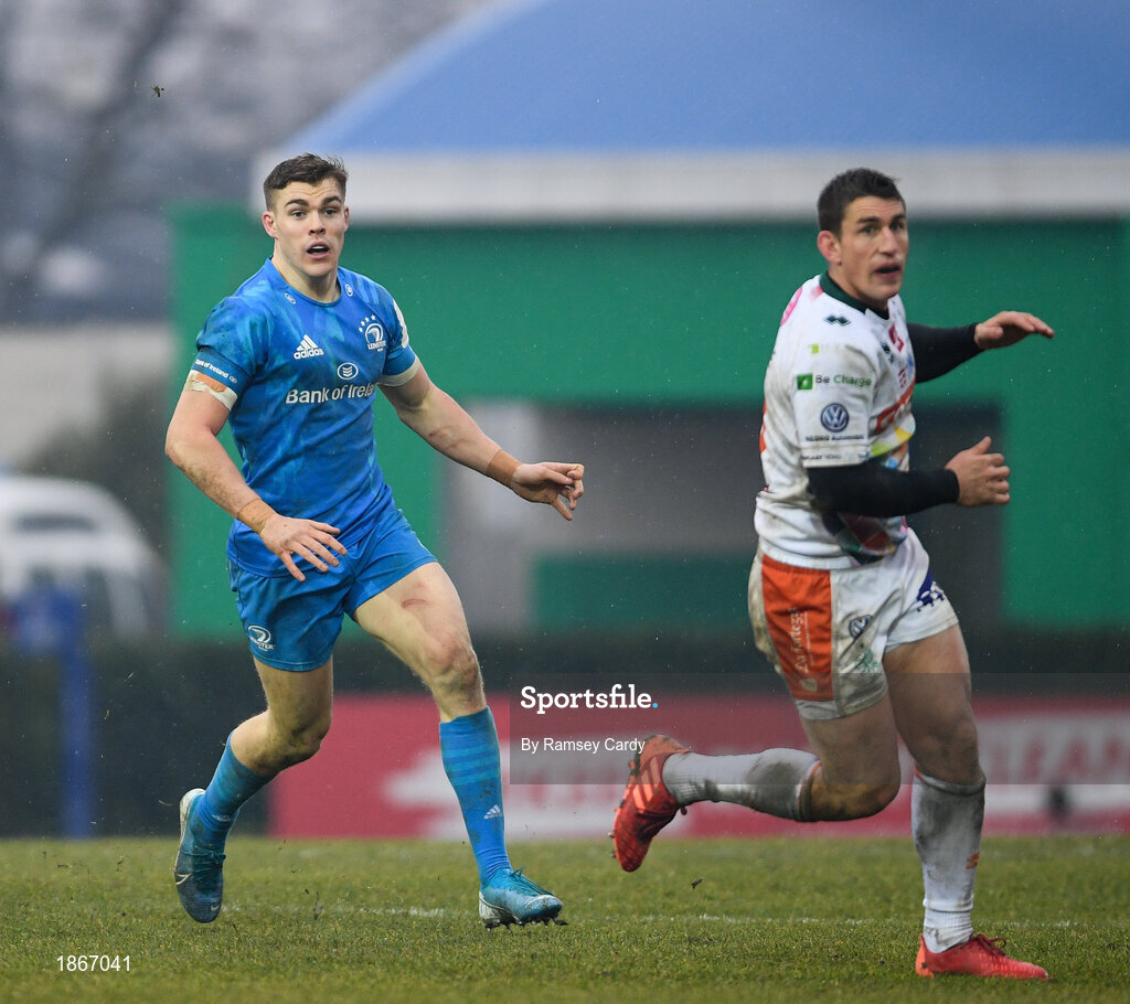 18 January 2020; Garry Ringrose of Leinster and Ian Keatley of Benetton during the Heineken Champions Cup Pool 1 Round 6 match between Benetton and Leinster at the Stadio Comunale di Monigo in Treviso, Italy. Photo by Ramsey Cardy/Sportsfile