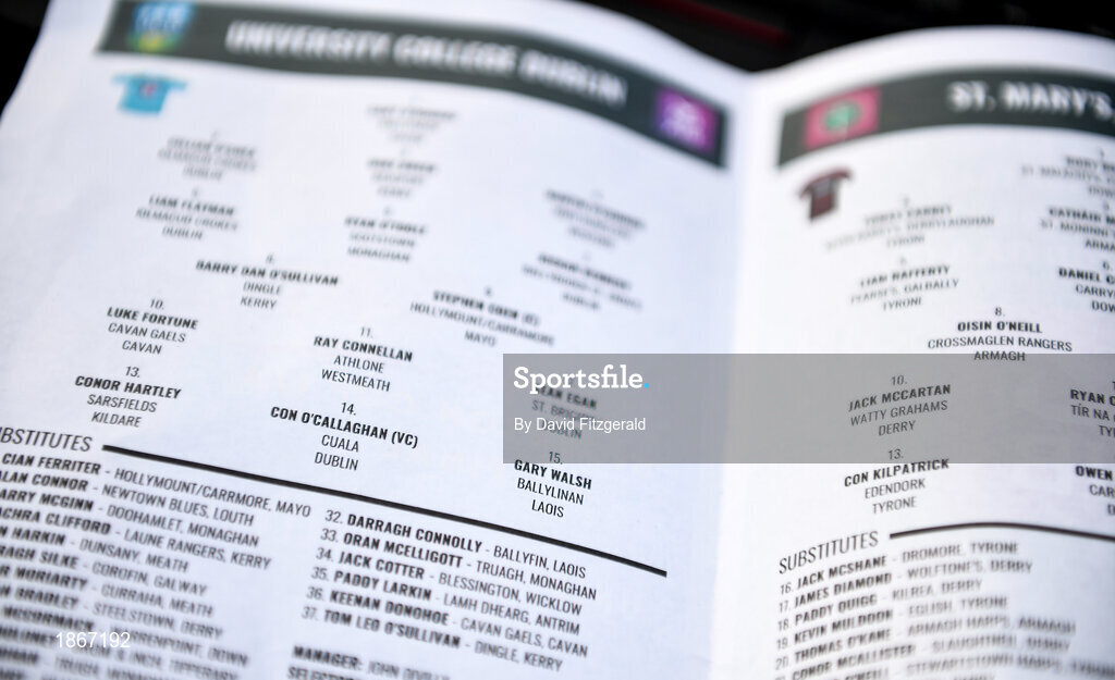 19 January 2020; The name of Con O'Callaghan of UCD is seen on the team sheet prior to the Sigerson Cup Quarter Final match between UCD and St Mary's University College at Belfield in UCD, Dublin. Photo by David Fitzgerald/Sportsfile