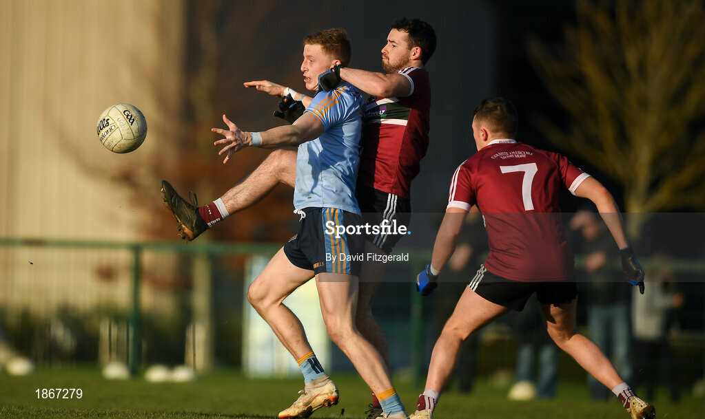 19 January 2020; Ray Connellan of UCD in action against Catháir McKinney of St Mary's during the Sigerson Cup Quarter Final between UCD and St Mary's University College at Belfield in UCD, Dublin. Photo by David Fitzgerald/Sportsfile