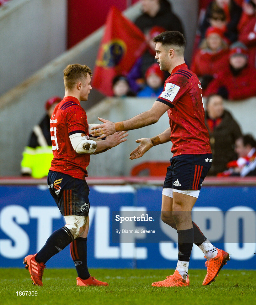 19 January 2020; Craig Casey of Munster comes on to replace team-mate Conor Murray during the Heineken Champions Cup Pool 4 Round 6 match between Munster and Ospreys at Thomond Park in Limerick. Photo by Diarmuid Greene/Sportsfile