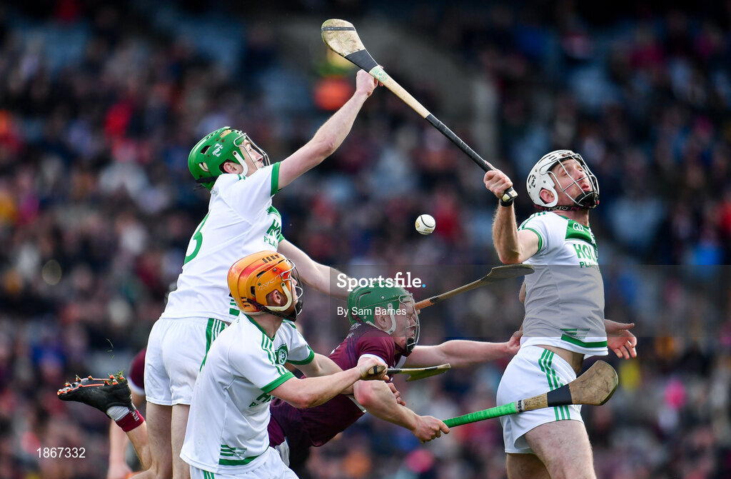 19 January 2020; Ballyhale Shamrocks players, from left, Joey Holden, Darren Mullen, front, and Michael Fennelly, in action against James Devaney of Borris-Ileigh during the AIB GAA Hurling All-Ireland Senior Club Championship Final between Ballyhale Shamrocks and Borris-Ileigh at Croke Park in Dublin. Photo by Sam Barnes/Sportsfile