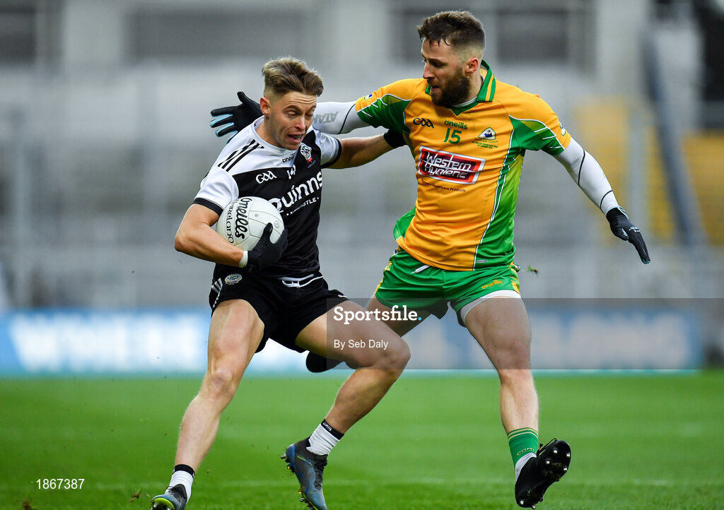 19 January 2020; Jerome Johnston of Kilcoo in action against Micheál Lundy of Corofin during the AIB GAA Football All-Ireland Senior Club Championship Final between Corofin and Kilcoo at Croke Park in Dublin. Photo by Seb Daly/Sportsfile