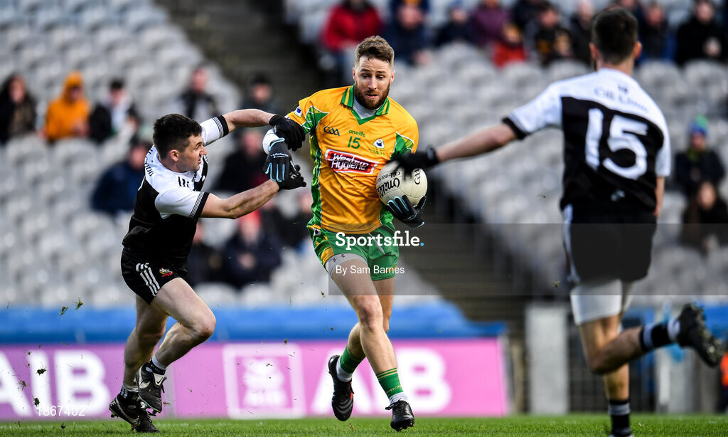 19 January 2020; Micheál Lundy of Corofin in action against Darryl Branagan, left, and Conor Laverty of Kilcoo during the AIB GAA Football All-Ireland Senior Club Championship Final between Corofin and Kilcoo at Croke Park in Dublin. Photo by Sam Barnes/Sportsfile