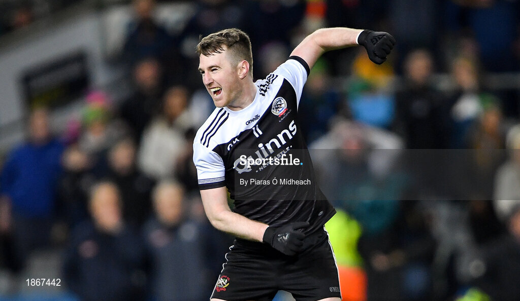 19 January 2020; Paul Devlin of Kilcoo celebrates scoring the last point of normal time, from a free, to send the game to extra-time during the AIB GAA Football All-Ireland Senior Club Championship Final between Corofin and Kilcoo at Croke Park in Dublin. Photo by Piaras Ó Mídheach/Sportsfile