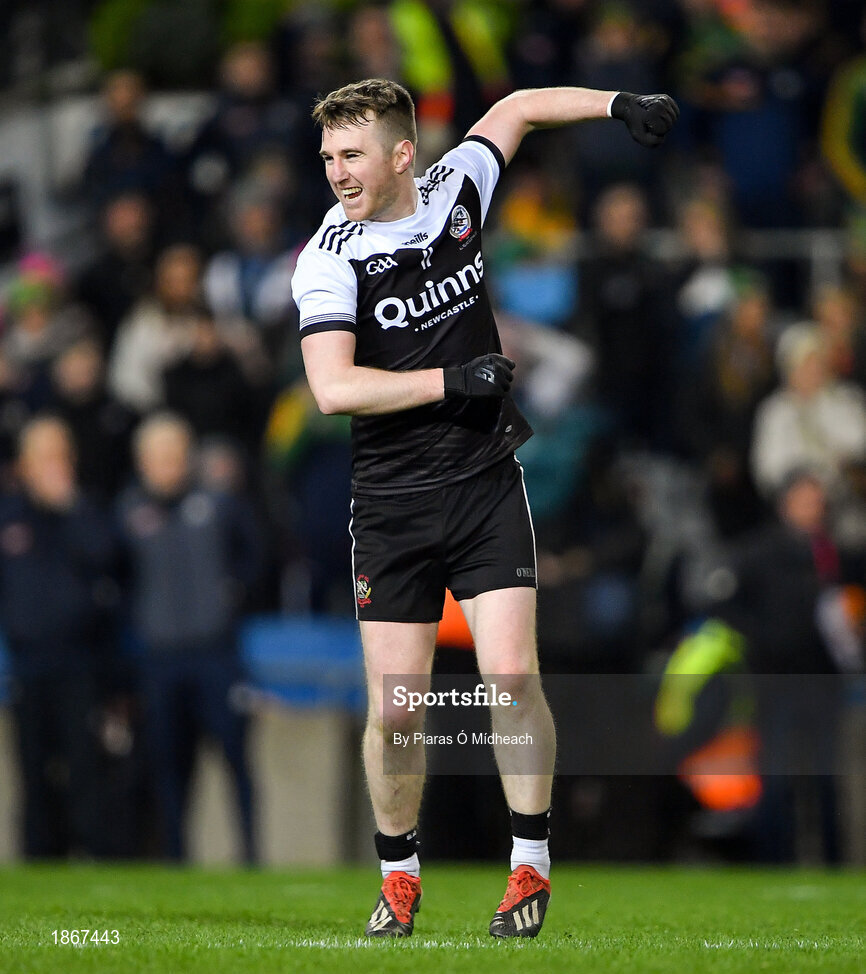19 January 2020; Paul Devlin of Kilcoo celebrates scoring the last point of normal time, from a free, to send the game to extra-time during the AIB GAA Football All-Ireland Senior Club Championship Final between Corofin and Kilcoo at Croke Park in Dublin. Photo by Piaras Ó Mídheach/Sportsfile