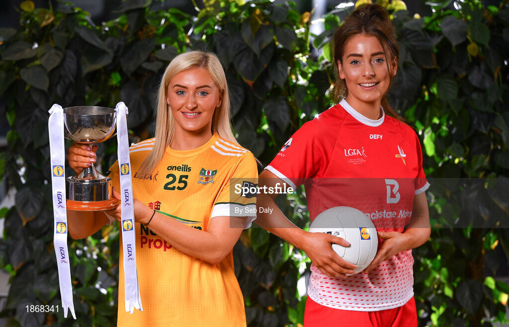 21 January 2020; In attendance at the launch of the 2020 Lidl Ladies National Football Leagues at Lidl Ireland Head Office in Tallaght, Dublin, are Áine Tubridy of Antrim, left, and Eimear Byrne of Louth. Photo by Seb Daly/Sportsfile
