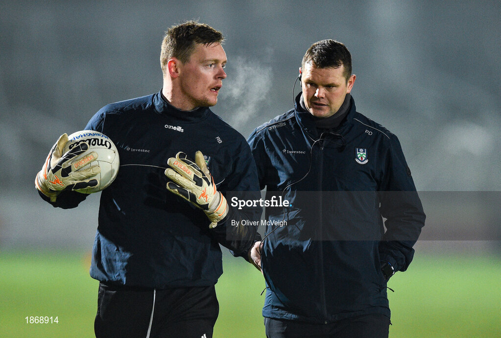 18 January 2020; Rory Beggan of Monaghan, left, with Peter Donnelly, Monaghan strength and conditioning coach, before the Bank of Ireland Dr McKenna Cup Final between Monaghan and Tyrone at Athletic Grounds in Armagh. Photo by Oliver McVeigh/Sportsfile
