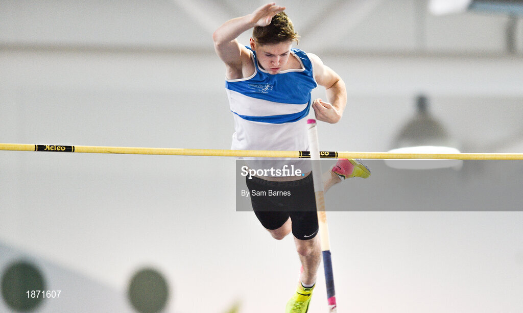25 January 2020; Matthew Callinan Keenan of St. Laurence O'Toole A.C., Carlow, competing in the U23 Men's Pole Vault during the Irish Life Health National Indoor Junior and U23 Championships at the AIT Indoor Arena in Athlone, Westmeath. Photo by Sam Barnes/Sportsfile