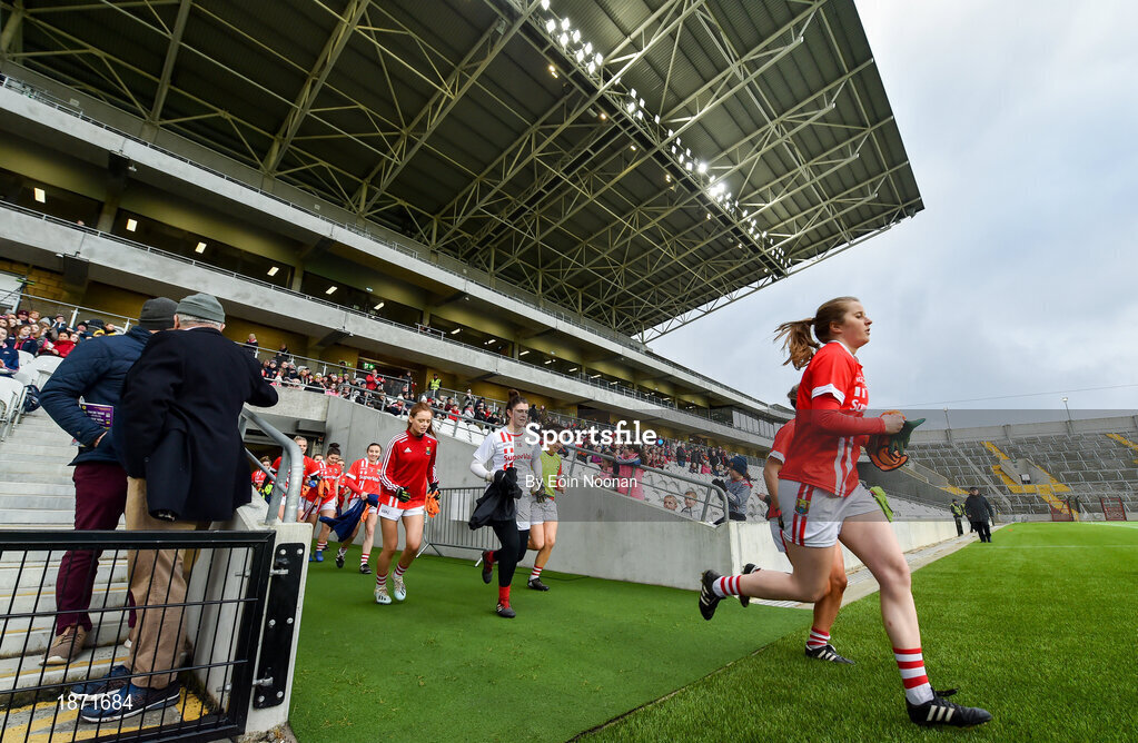 25 January 2020; Cork players make their way out the pitch prior to the 2020 Lidl Ladies National Football League Division 1 Round 1 match between Cork and Westmeath at Páirc Ui Chaoimh in Cork. Photo by Eóin Noonan/Sportsfile