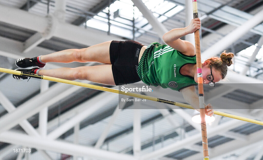 25 January 2020; Abbie O'Neill of Ballymena & Antrim A.C., competing in the Junior Women's Pole Vault during the Irish Life Health National Indoor Junior and U23 Championships at the AIT Indoor Arena in Athlone, Westmeath. Photo by Sam Barnes/Sportsfile