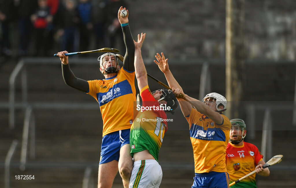26 January 2020; Conor Cleary of Clare in action against John Michael Nolan of Carlow during the Allianz Hurling League Division 1 Group B Round 1 match between Clare and Carlow at Cusack Park in Ennis, Clare. Photo by Diarmuid Greene/Sportsfile