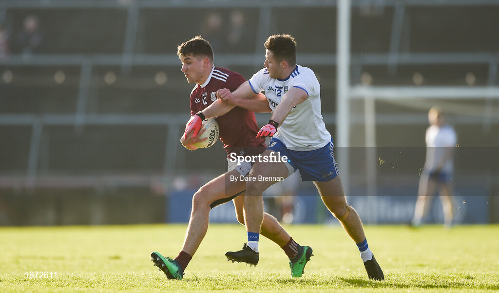 26 January 2020; Michael Daly of Galway in action against Dessie Ward of Monaghan during the Allianz Football League Division 1 Round 1 match between Galway and Monaghan at Pearse Stadium in Galway. Photo by Daire Brennan/Sportsfile
