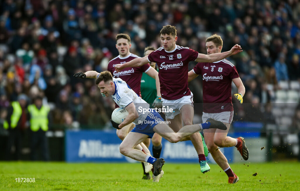 26 January 2020; Karl O’Connell of Monaghan in action against Michael Daly of Galway during the Allianz Football League Division 1 Round 1 match between Galway and Monaghan at Pearse Stadium in Galway. Photo by Daire Brennan/Sportsfile