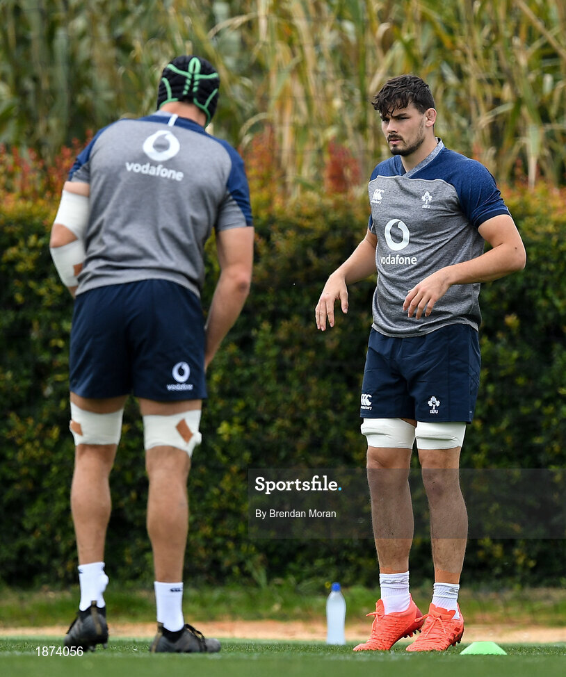 28 January 2020; Max Deegan, right, during Ireland Rugby squad training at The Campus in Quinta da Lago, Portugal. Photo by Brendan Moran/Sportsfile