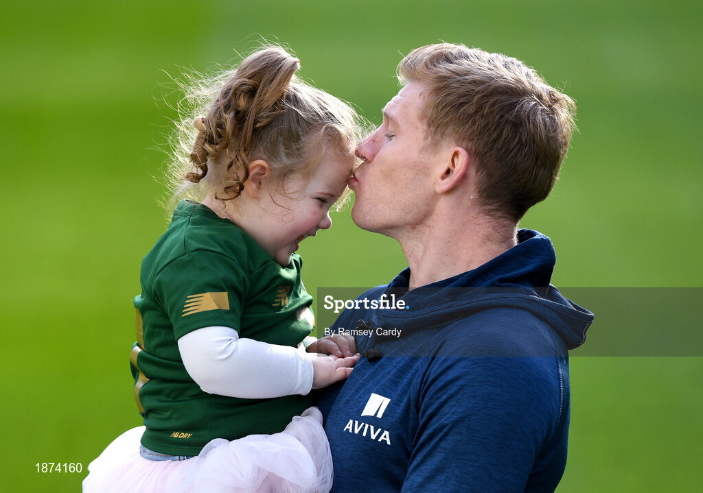 28 January 2020; Irish soccer star James McClean is pictured with his 2 year old daughter Willow at the unveiling of Aviva’s new Sensory Hub in Aviva Stadium. Aviva, Ireland’s largest insurer, and proud sponsors of the home of Irish rugby and soccer launched the initiative to make Aviva Stadium a more inclusive space for people with additional sensory needs. The state-of-the-art sensory booth is free for any fan to use during their visit to Aviva Stadium. For more information follow Aviva on Instagram, Twitter, and Facebook or visit www.aviva.ie/sponsorship. Photo by Ramsey Cardy/Sportsfile