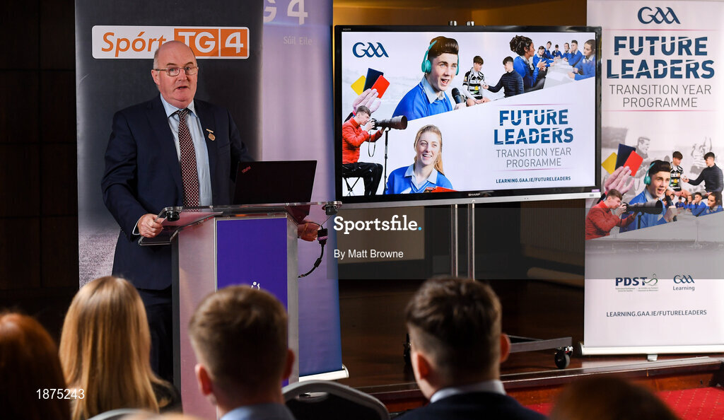 30 January 2020; Uachtarán Chumann Lúthchleas Gael Seán Ó hÓráin during the GAA / PDST Future Leaders Leagan Gaeilge launch at Croke Park in Dublin. Photo by Matt Browne/Sportsfile
