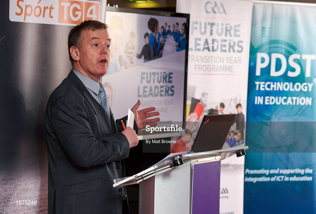 30 January 2020; Dónal Ó hAiniféin, Cathaoirleach COGG, during the GAA / PDST Future Leaders Leagan Gaeilge launch at Croke Park in Dublin. Photo by Matt Browne/Sportsfile