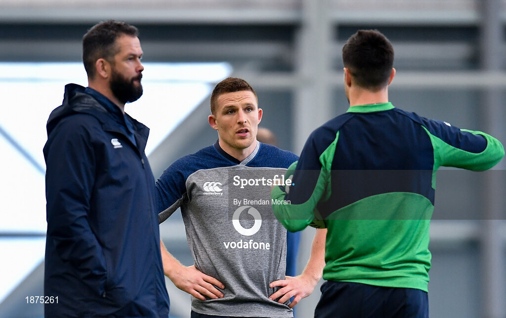 30 January 2020; Andrew Conway, centre, with head coach Andy Farrell, left, and Conor Murray during Ireland Rugby squad training at the IRFU High Performance Centre in Abbotstown, Dublin. Photo by Brendan Moran/Sportsfile