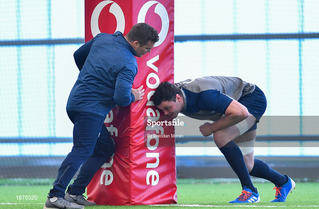30 January 2020; James Ryan with national scrum coach John Fogarty during Ireland Rugby squad training at the IRFU High Performance Centre in Abbotstown, Dublin. Photo by Brendan Moran/Sportsfile