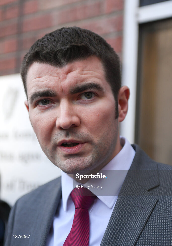 30 January 2020; Minister of State for Tourism and Sport Brendan Griffin TD, speaks following a Government Officials, FAI, UEFA and Bank of Ireland meeting at the Department of Transport, Tourism and Sport in Dublin. Photo by Harry Murphy/Sportsfile