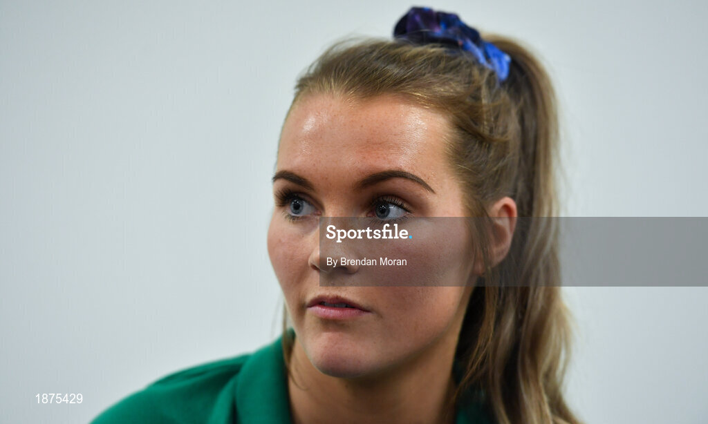 30 January 2020; Aoife Doyle during an Ireland Women's Rugby press conference at the IRFU High Performance Centre in Abbotstown, Dublin. Photo by Brendan Moran/Sportsfile