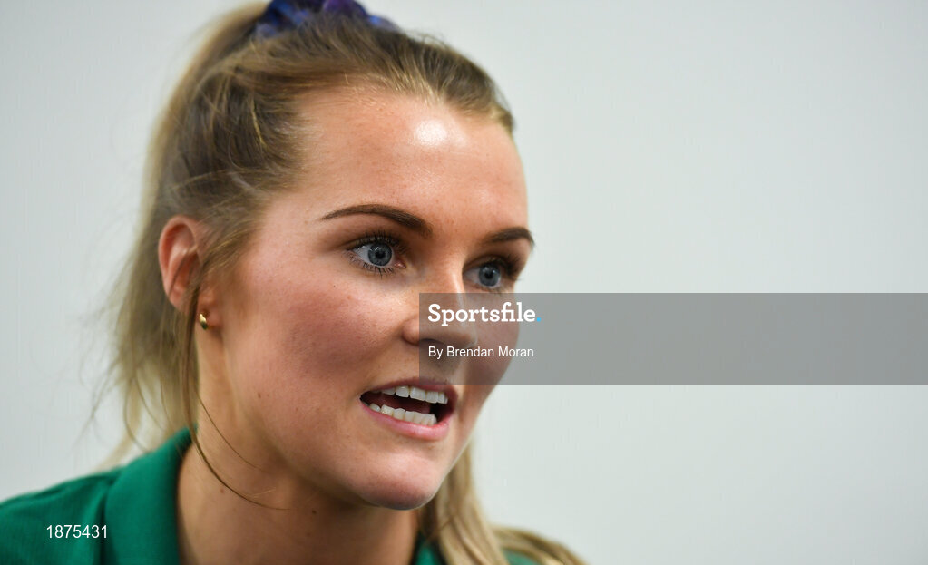 30 January 2020; Aoife Doyle during an Ireland Women's Rugby press conference at the IRFU High Performance Centre in Abbotstown, Dublin. Photo by Brendan Moran/Sportsfile