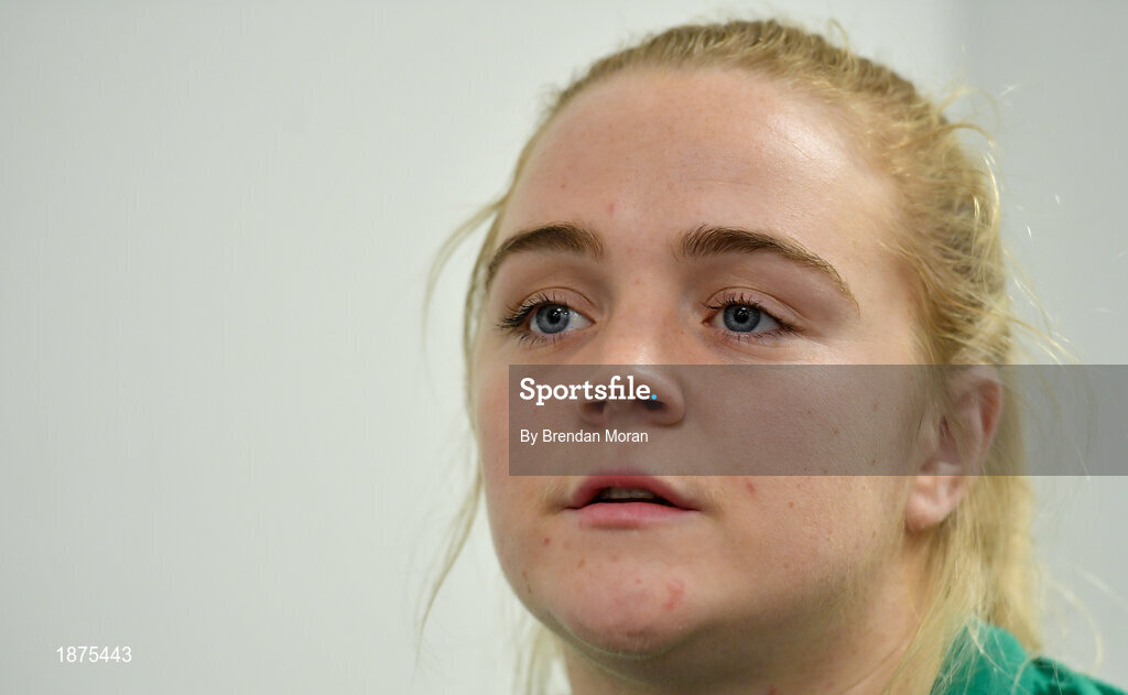 30 January 2020; Cliodhna Moloney during an Ireland Women's Rugby press conference at the IRFU High Performance Centre in Abbotstown, Dublin. Photo by Brendan Moran/Sportsfile
