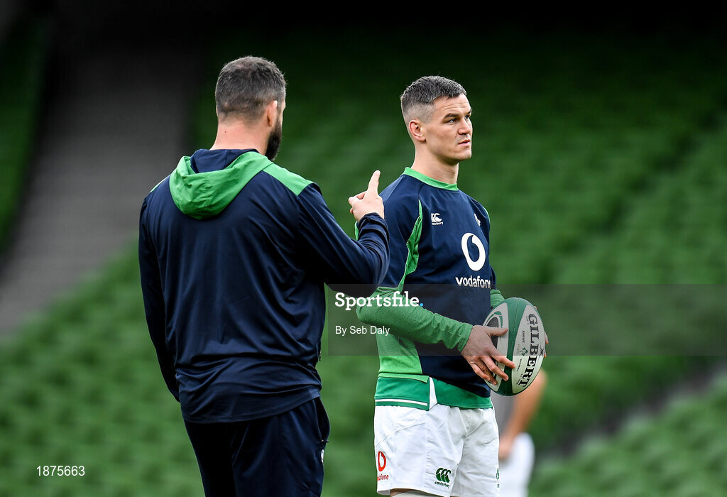 31 January 2020; Jonathan Sexton, right, and head coach Andy Farrell during an Ireland Rugby captain's run at the Aviva Stadium in Dublin. Photo by Seb Daly/Sportsfile