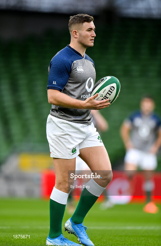 31 January 2020; Jordan Larmour during an Ireland Rugby captain's run at the Aviva Stadium in Dublin. Photo by Seb Daly/Sportsfile