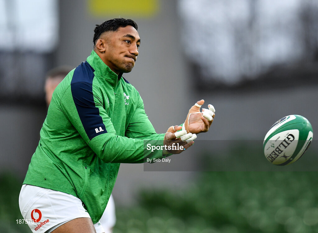 31 January 2020; Bundee Aki during an Ireland Rugby captain's run at the Aviva Stadium in Dublin. Photo by Seb Daly/Sportsfile