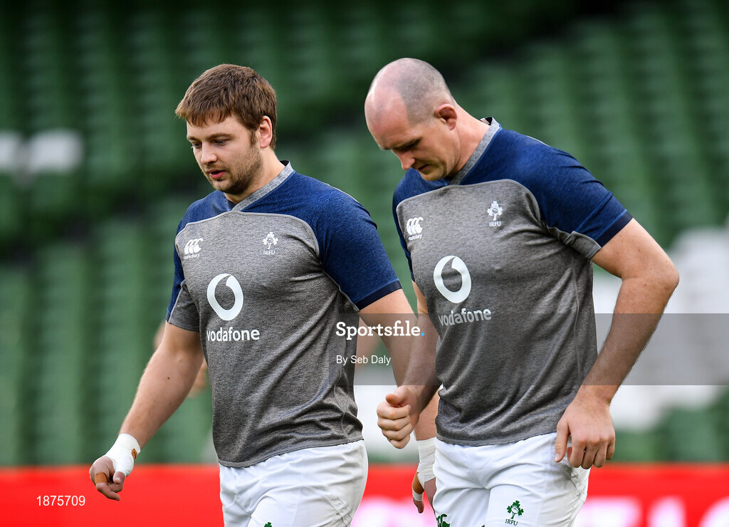 31 January 2020; Devin Toner, right, and Iain Henderson during an Ireland Rugby captain's run at the Aviva Stadium in Dublin. Photo by Seb Daly/Sportsfile
