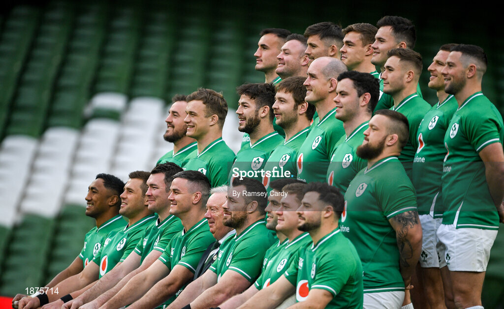 31 January 2020; The Ireland team pose for a team photograph during the Ireland Rugby captain's run at the Aviva Stadium in Dublin. Photo by Ramsey Cardy/Sportsfile