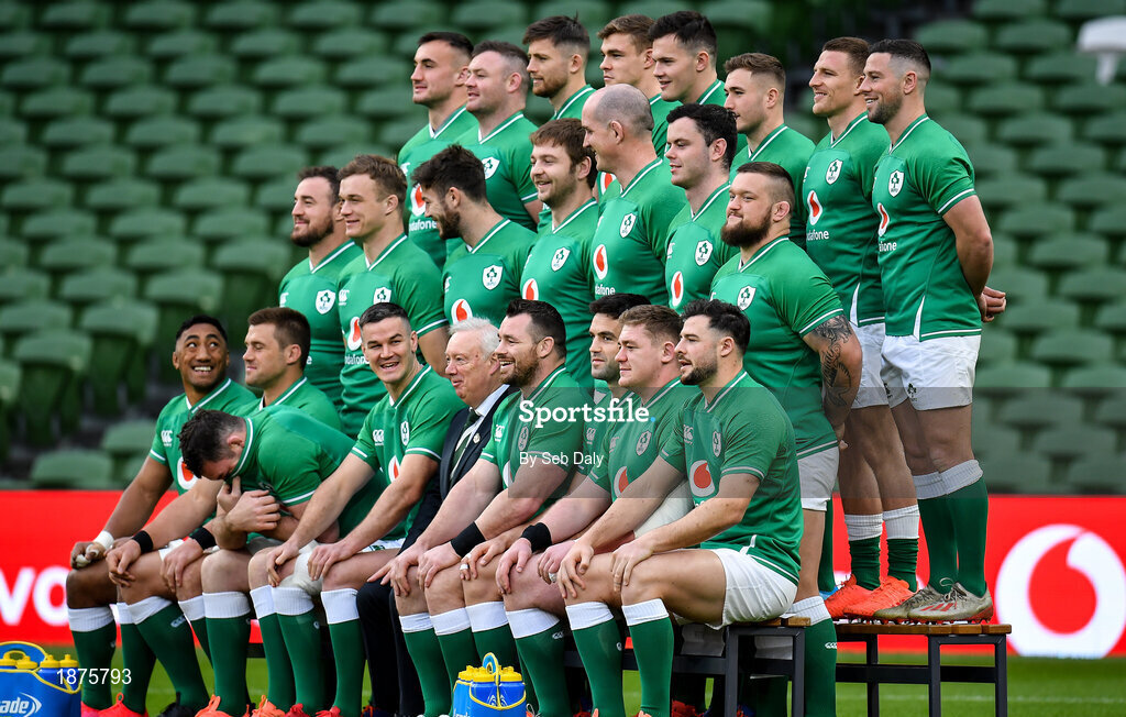 31 January 2020; The Ireland team pose for a team photograph during the Ireland Rugby captain's run at the Aviva Stadium in Dublin. Photo by Seb Daly/Sportsfile