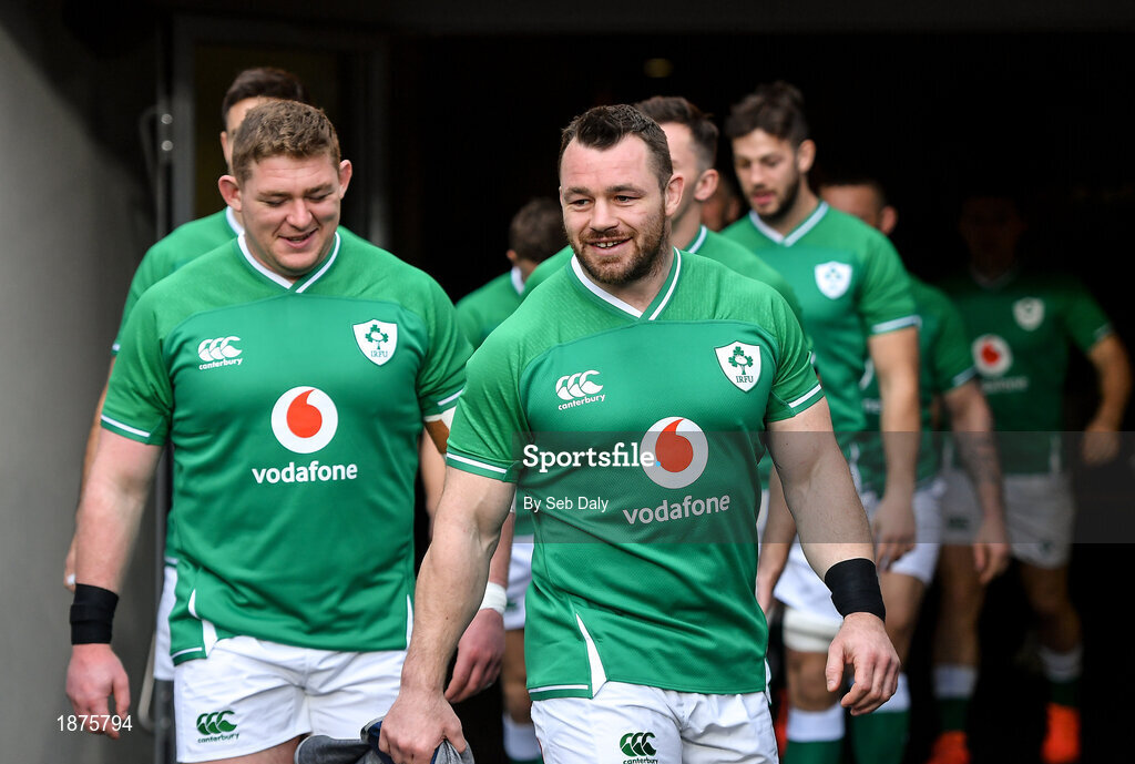 31 January 2020; Cian Healy, right, and Tadhg Furlong during an Ireland Rugby captain's run at the Aviva Stadium in Dublin. Photo by Seb Daly/Sportsfile
