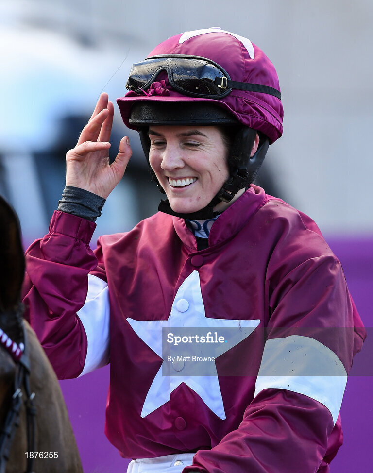 1 February 2020; Rachael Blackmore after winning The ERSG Arkle Novice Steeplechase on Notebook during Day One of the Dublin Racing Festival at Leopardstown Racecourse in Dublin. Photo by Matt Browne/Sportsfile