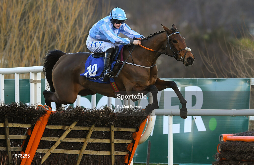1 February 2020; Honeysuckle, with Rachael Blackmore up, jumps the last on their way to winning the PCI Irish Champion Hurdle during Day One of the Dublin Racing Festival at Leopardstown Racecourse in Dublin. Photo by Matt Browne/Sportsfile