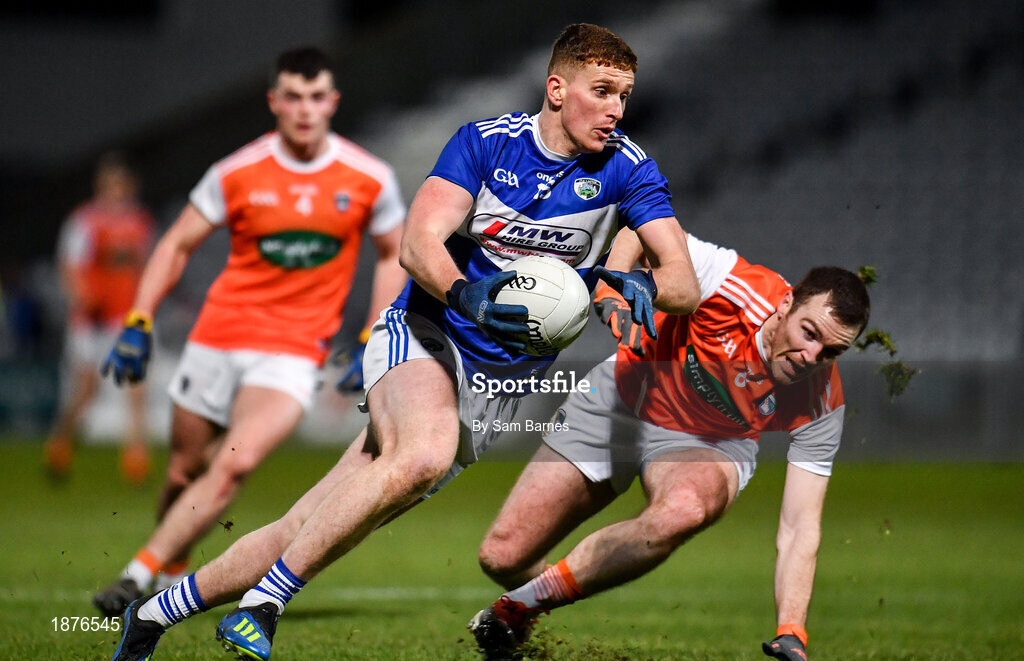 1 February 2020; Evan O’Carroll of Laois in action against Brendan Donaghy of Armagh during the Allianz Football League Division 2 Round 2 match between Laois and Armagh at MW Hire O'Moore Park in Portlaoise, Laois. Photo by Sam Barnes/Sportsfile