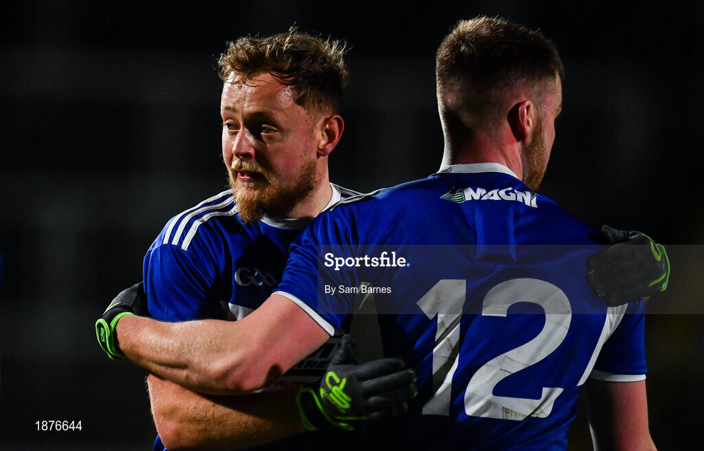 1 February 2020; Damien O’Connor, left, and Eoin Lowry of Laois embrace following the Allianz Football League Division 2 Round 2 match between Laois and Armagh at MW Hire O'Moore Park in Portlaoise, Laois. Photo by Sam Barnes/Sportsfile
