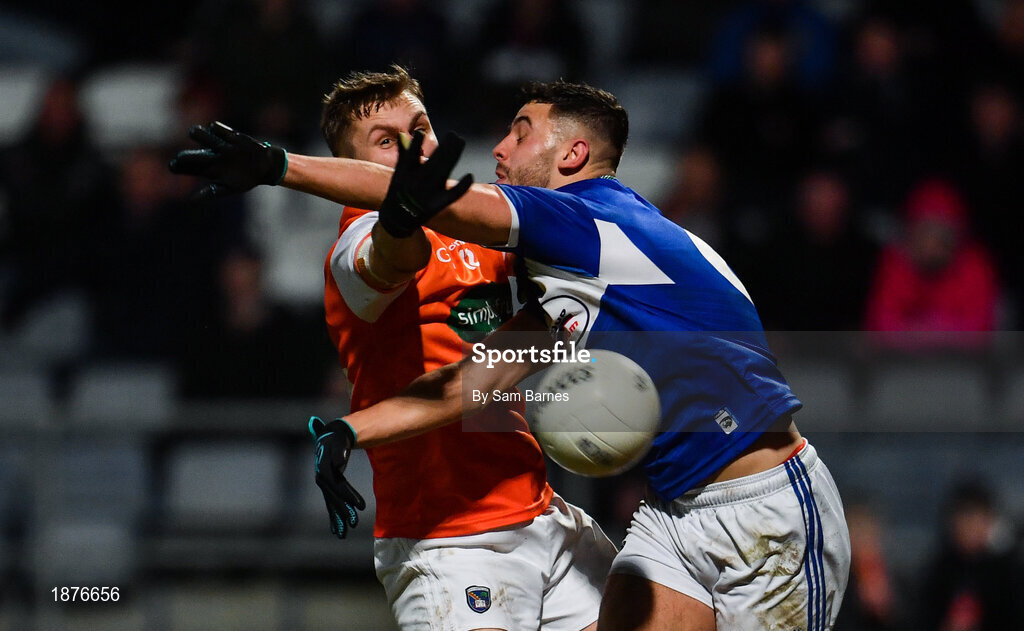1 February 2020; Oisin O’Neill of Armagh in action against Robert Pigott of Laois during the Allianz Football League Division 2 Round 2 match between Laois and Armagh at MW Hire O'Moore Park in Portlaoise, Laois. Photo by Sam Barnes/Sportsfile