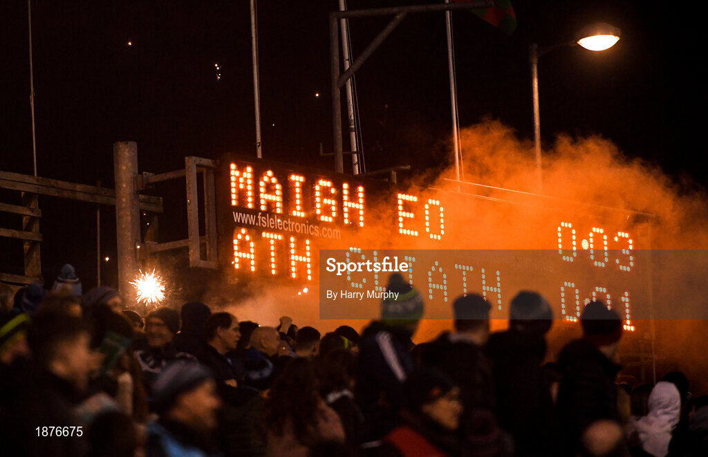 1 February 2020; Supporters let off fireworks during the Allianz Football League Division 1 Round 2 match between Mayo and Dublin at Elverys MacHale Park in Castlebar, Mayo. Photo by Harry Murphy/Sportsfile