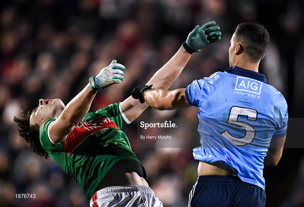 1 February 2020; James McCarthy of Dublin and Diarmuid O'Connor of Mayo tussle during the Allianz Football League Division 1 Round 2 match between Mayo and Dublin at Elverys MacHale Park in Castlebar, Mayo. Photo by Harry Murphy/Sportsfile
