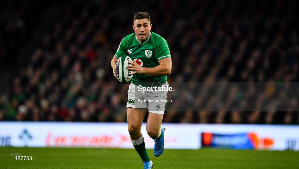 1 February 2020; Jordan Larmour of Ireland during the Guinness Six Nations Rugby Championship match between Ireland and Scotland at the Aviva Stadium in Dublin. Photo by Brendan Moran/Sportsfile