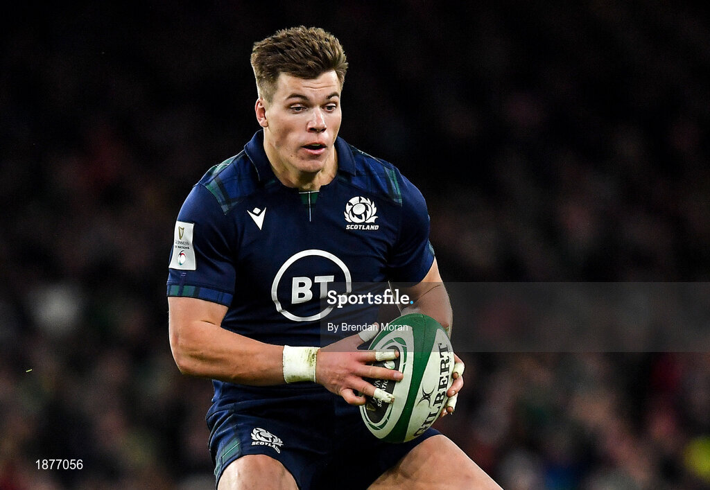 1 February 2020; Huw Jones of Scotland during the Guinness Six Nations Rugby Championship match between Ireland and Scotland at the Aviva Stadium in Dublin. Photo by Brendan Moran/Sportsfile