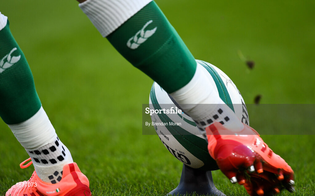 1 February 2020; A general view of a rugby ball being kicked during the Guinness Six Nations Rugby Championship match between Ireland and Scotland at the Aviva Stadium in Dublin. Photo by Brendan Moran/Sportsfile
