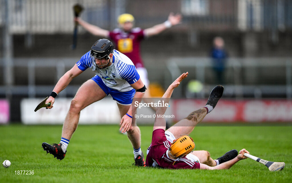 2 February 2020; Iarlaith Daly of Waterford in action against Niall Mitchell of Westmeath during the Allianz Hurling League Division 1 Group A Round 2 match between Westmeath and Waterford at TEG Cusack Park in Mullingar, Westmeath. Photo by Piaras Ó Mídheach/Sportsfile