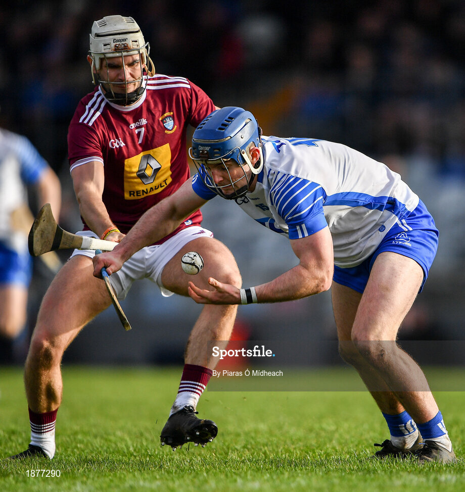 2 February 2020; Patrick Curran of Waterford in action against Shane Clavin of Westmeath during the Allianz Hurling League Division 1 Group A Round 2 match between Westmeath and Waterford at TEG Cusack Park in Mullingar, Westmeath. Photo by Piaras Ó Mídheach/Sportsfile