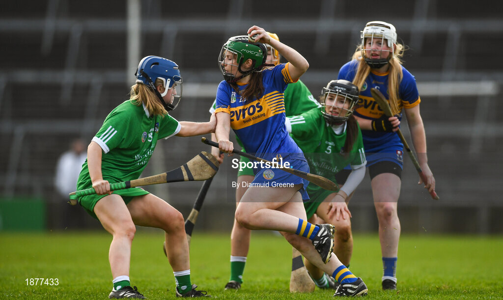 2 February 2020; Roisin Howard of Tipperary in action against Dearbhla Egan of Limerick during the Littlewoods Ireland National Camogie League Division 1 match between Limerick and Tipperary at LIT Gaelic Grounds in Limerick. Photo by Diarmuid Greene/Sportsfile