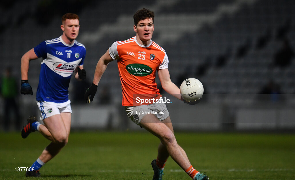 1 February 2020; Jarlath Og Burns of Armagh in action against Colm Murphy of Laois during the Allianz Football League Division 2 Round 2 match between Laois and Armagh at MW Hire O'Moore Park in Portlaoise, Laois. Photo by Sam Barnes/Sportsfile