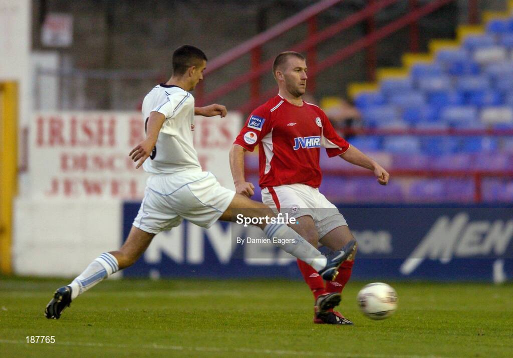 22 August 2005; Alan Reynolds, Shelbourne, in action against Gary Dicker, UCD. eircom League Cup, Semi-Final, Shelbourne v UCD, Tolka Park, Dublin. Picture credit; Damien Eagers / SPORTSFILE