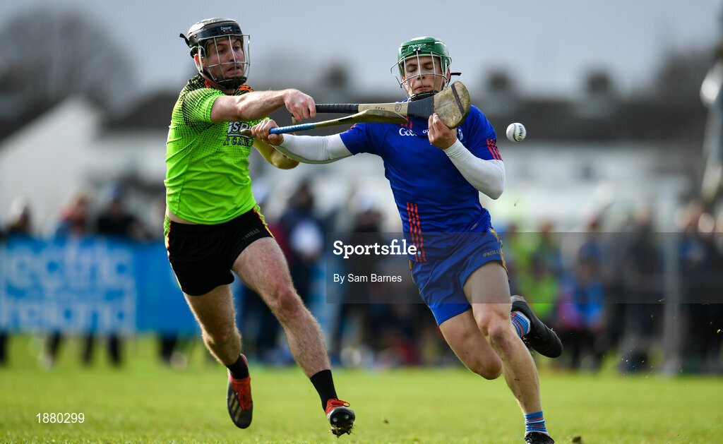 8 February 2020; Gary Cooney of Mary Immaculate College Limerick in action against Jason Cleere of IT Carlow during the Fitzgibbon Cup Semi-Final match between Mary Immaculate College Limerick and IT Carlow at Dublin City University Sportsgrounds. Photo by Sam Barnes/Sportsfile